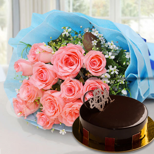 💐 Giftmycart brings you the perfect duo for every special moment — a gorgeous pink roses bouquet paired with a decadent chocolate truffle cake. Whether